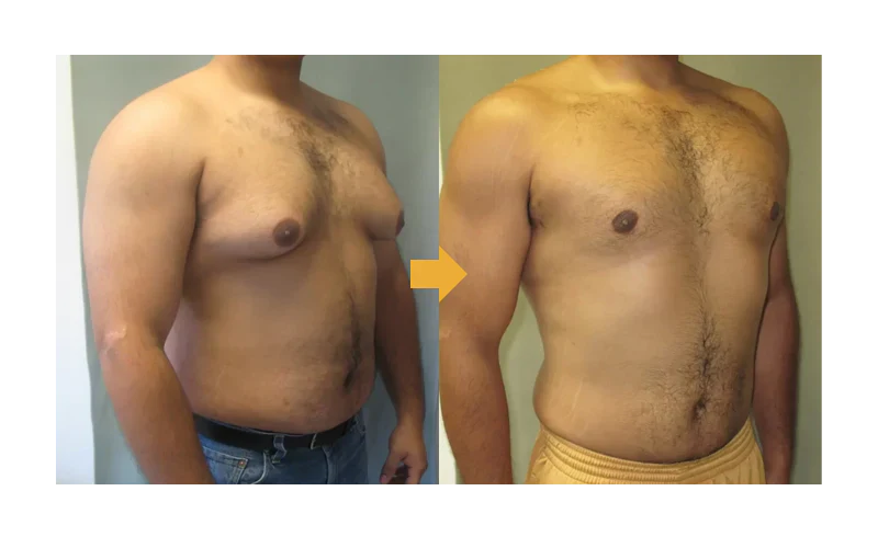 Ginekomastija je često povezana sa neravnotežom između estrogena i testosterona, stanjem koje može biti pogoršano gojaznošću. Višak telesne masti remeti nivo hormona, povećavajući estrogen, što doprinosi uvećanju muškog tkiva dojki.